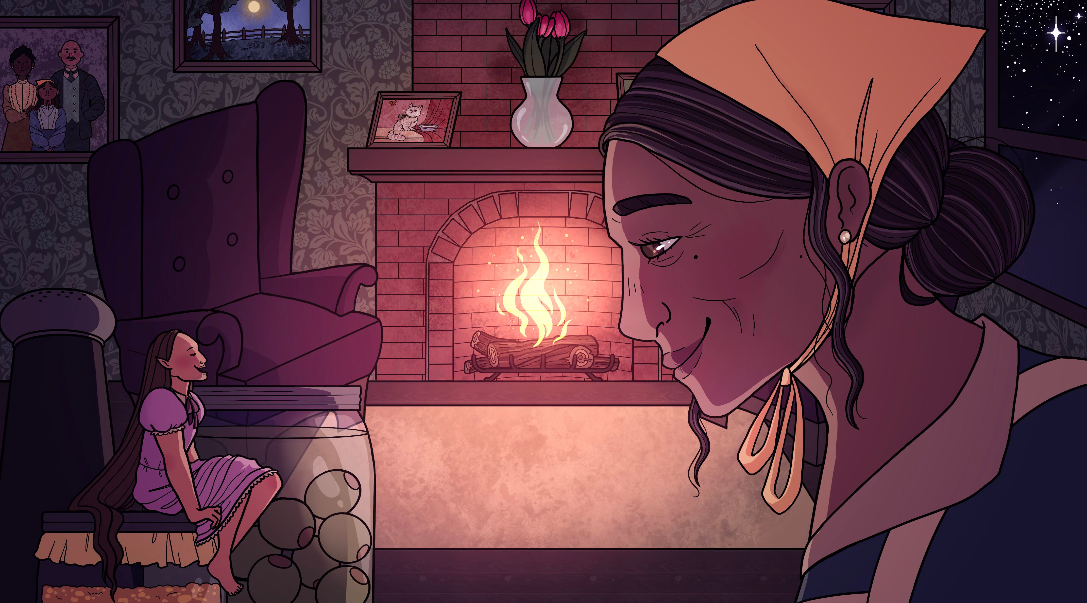 The old woman gently scooped the sleeping baby into her hand and took her inside. She swaddled the child in a square of fabric cut from a handkerchief and set her to sleep in a walnut shell. The old woman named the baby Lilibet. She fed her applesauce and milk-soaked breadcrumbs. She stitched tiny dresses and adorned them with scraps of ribbon and lace.